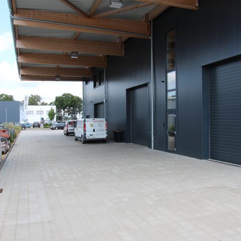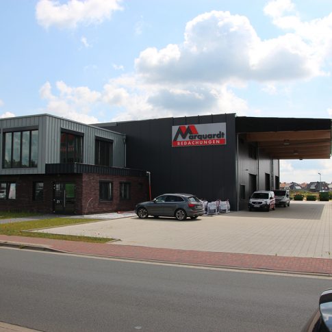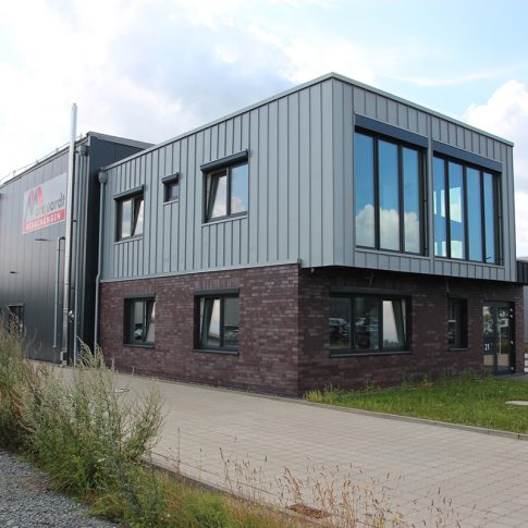 Gewerbehalle mit Bürogebäude für einen Dachdeckerbetrieb