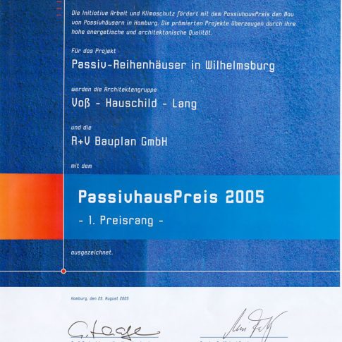 Im Zuge der Solarbauausstellung in Hamburg wurde dieses Gebäude als Passivhaus des Jahres ausgezeichnet. Das Gebäude besteht aus 4 Reihenhäuser, mit einem kompakten aber modernen Grundriss.
